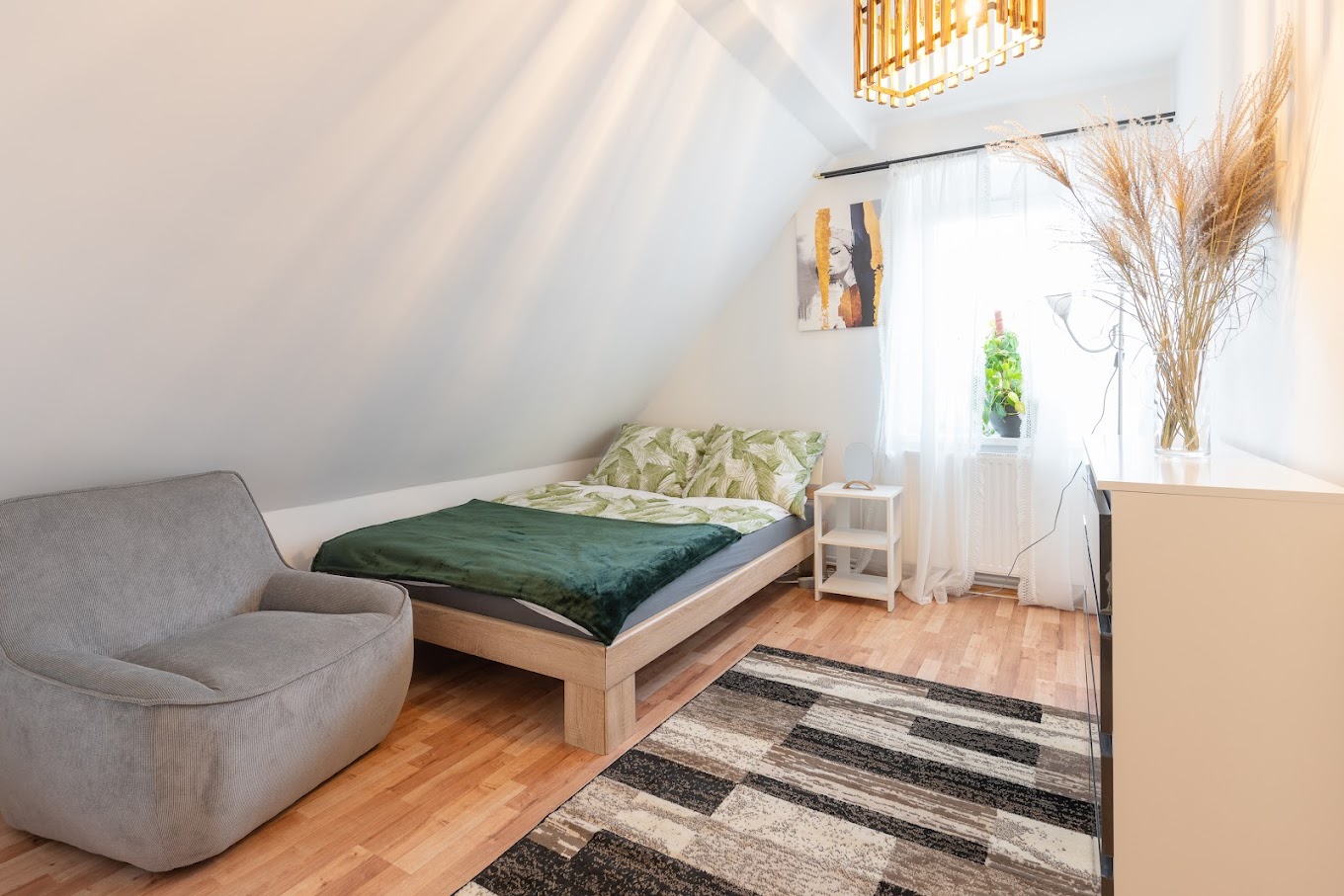 Dwie sypialnie, salon, w pełni wyposażona kuchnia i komfortowa łazienka.